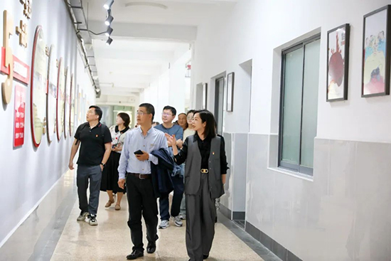 湖州市月河小學教育集團一行實地考察了學校的美育作品展廳、黨建思政工作室、黨建長廊、“和文化”藝術長廊、名師長廊及實訓文化街區等廉潔文化陣地建設情況。