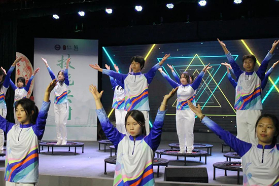 跳躍的音符演繹青春活力,輕盈的舞步展現(xiàn)青春節(jié)拍。青春昂揚(yáng)、激動人心的蹦床表演《潮涌》引燃了全場的熱情與歡呼。