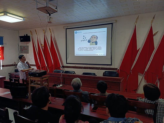 鐘強以《針灸科常見病——面癱》為題,通過觀看“起床時突然發現自己面部不聽使喚,漱口時突然發現自己嘴角開始漏水,吃東西時突然有嵌頓感,甚至耳朵后側疼痛……”的視頻,向老年人解釋這種現象叫做“面癱”。