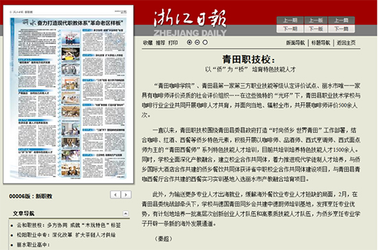 比責任、講擔當,服務發展有為有位。開展“青田中德廚師基地”項目合作,為海外餐飲行業輸送高素質烹飪人才,持續擦亮“國際廚師的搖籃”學校金名片。落實訓并舉法定職責,依托浙江省高技能人才公共實訓基地、青田縣農民學校、青田咖啡學院,發揮專業、師資、設備等優勢,積極開展新型職業農民、“學歷+技能”雙提升、“青田西餐大師”等各類培訓3800余人次。與接東源閥門企業開展產教融合、校企合作,助力學生成長、產業發展。全力做好東西部協作,圓滿完成四川古藺職高30名學生來青交流學習,助力共同富裕?!墩憬請蟆贩謩e以《海外中餐廳廚師“青田造”》《以僑為橋 培養特色技能人才》為題對學校培養海外廚師以及僑鄉時尚餐飲人才進行了宣傳報道,學校影響力和美譽度進一步提升。