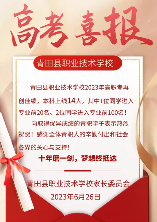 春華秋實,歲物豐成?;厥?023年,在職業教育高質量發展的新征程中,學校堅定社會主義辦學方向,以堅韌應對挑戰、以實干勇毅前行,書寫了高質量發展的新篇章,青田縣職業技術學校的適應性與貢獻力不斷增強,影響力、輻射力、美譽度持續提升,學校邁入到進步最快、發展最好的新階段。