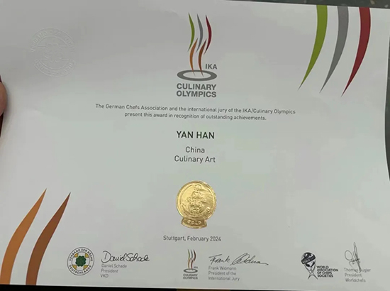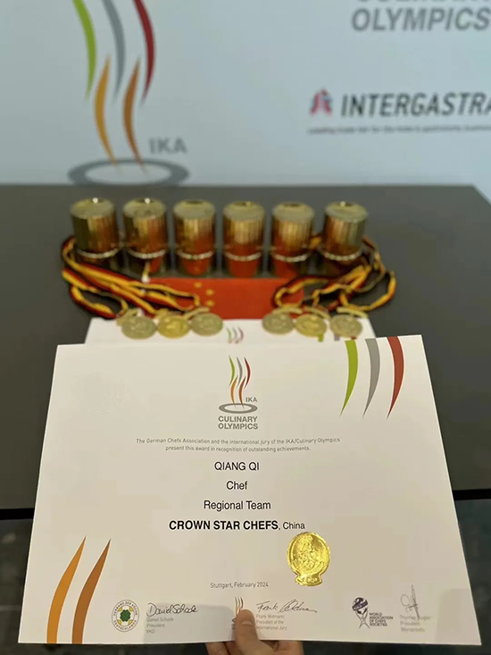 2月5日,在德國斯圖加特舉辦的第26屆IKA世界奧林匹克烹飪大賽頒獎大廳上響起了雷鳴般的歡呼聲,來自全球的頂級烹飪大師們把掌聲送給了古林職高優秀畢業學子綦強與閻晗,綦強所在的隊伍作為唯一一個參加比賽的中國團隊,拿到了迄今為止中國唯一的一個團隊金牌,在世界舞臺上展現中國西烹的實力。而閻晗則是作為青年廚師代表參加比賽,收獲了金牌。