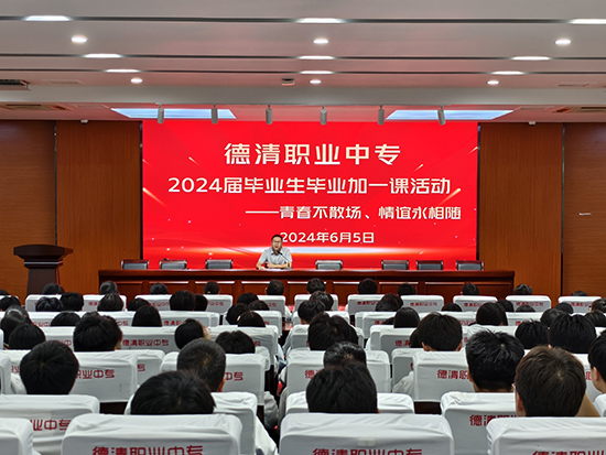 6月5日下午,德清職業中專2024屆畢業生“畢業加一課”活動在歡聲笑語中圓滿落幕。本次活動由學校政教處處長馬紀孝主持,學校21級3+2班級、五年一貫制班級以及21級平面專業自考班等300名學生參加。活動主題為“青春不散場 情誼永相隨”。本次活動旨在為畢業之際的學生加入一節安全課堂,守護畢業生們一路前行,安全開啟人生新篇章。