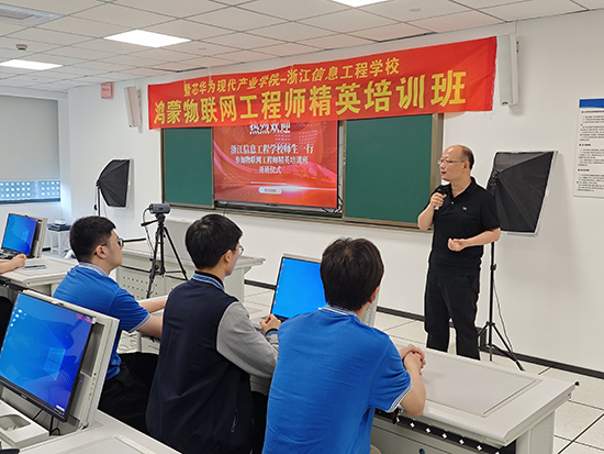 此次培訓班學員主要從信息部3+2班、高級工班、高考班中部分優秀學生中選拔產生,培訓周期一個月。學員們通過系統學習和實踐訓練,掌握鴻蒙系統的基本原理、開發方法和應用技巧,能夠獨立完成鴻蒙系統的應用開發、調試與維護工作,考取物聯網工程師職業資格證書和華為鴻蒙工程師(HCIA)證書。
