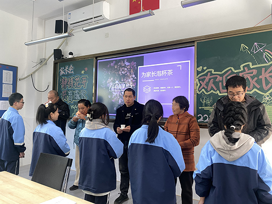 她架起了學生與家長之間溝通的橋梁。毛老師注重與家長的溝通交流,及時反饋學生在校表現(xiàn),共同關(guān)注學生的成長。她善于傾聽學生的心聲,關(guān)心她們的學習和生活,幫助她們解決各種困難。2023年11月,迎來了2022屆學生的第一次家長會。毛老師秉持著“家校合作”的理念,策劃了一次彰顯茶藝專業(yè)技能家長會,特意安排孩子為家長泡杯茶的環(huán)節(jié),以感恩家長的養(yǎng)育之恩。