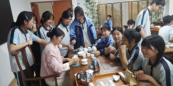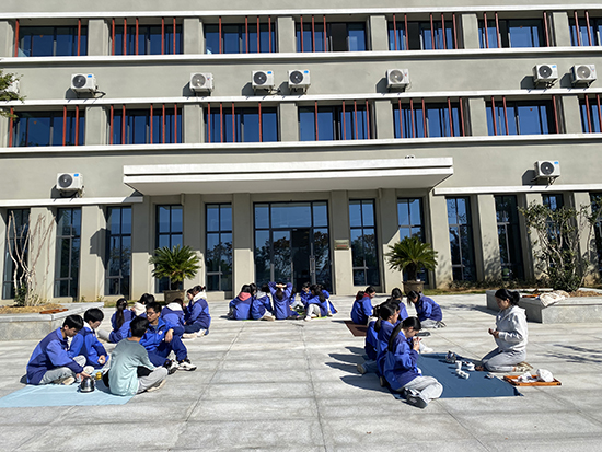毛老師身旁有兩位得力的“左右護法”,她們是兩位勤奮好學的女生。課余時間,她們是毛老師如影隨形的小助手。每當學校舉辦活動,毛老師和她們總是那些最忙碌的身影。無論是搬茶桌、洗茶具,還是后續(xù)的打包整理工作,她們都展現(xiàn)出極高的專業(yè)素養(yǎng)和嚴謹?shù)墓ぷ鲬B(tài)度,確保每一項任務都井然有序,完美呈現(xiàn)。她們特別熱衷于“蹭茶”,尤其是毛老師親手泡制的茶。在茶香的縈繞下,她們常常手持品茗杯,聚精會神地向毛老師請教關(guān)于茶的各種問題。她們笑著說:“跟著毛老師,我們不僅品嘗到了茶的香醇,更收獲了無盡的知識和智慧。”如今,她們的目標更加堅定——那就是在茶文化的道路上不斷超越自我,努力向毛老師看齊,甚至超越她,成為茶文化領(lǐng)域的佼佼者。