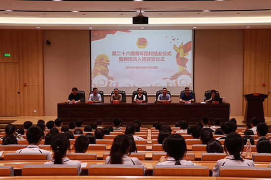 6月20日中午,玉環市中等職業技術學校在學校A系部樓階梯教室隆重舉行第二十六期青年團校結業典禮暨新團員入團宣誓儀式,學校副校長郭海英,黨務辦主任蔡其標,第一、二、三黨支部書記汪光岳、金松、王金偉,團委書記李若鋌及243位第二十六期順利結業學員參加。活動由林旭環老師主持。