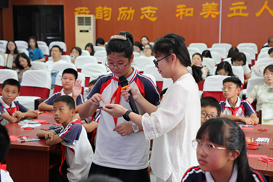 長興美術青改組成員王潔、張穎、端青云、曹俊四位老師在長興縣美術教研員高穎老師的指導下開展美術大單元教學展示活動,通過《剪紋樣》《生肖剪紙紋樣》《衣飾剪紙紋樣》《皮影紋樣賞析》四節課例的展示,不僅讓學生傳承了傳統技藝,還通過陶器、紙盤、肚兜、皮影等載體將剪紙貫穿生活,展望對生活的美好向往。張羽老師以《剪紙悅生活,非遺共傳承》對此次剪紙單元教學設計就大單元的概念與基本問題、單元設計思路、單元目標、重難點以及單元評價進行了匯報。