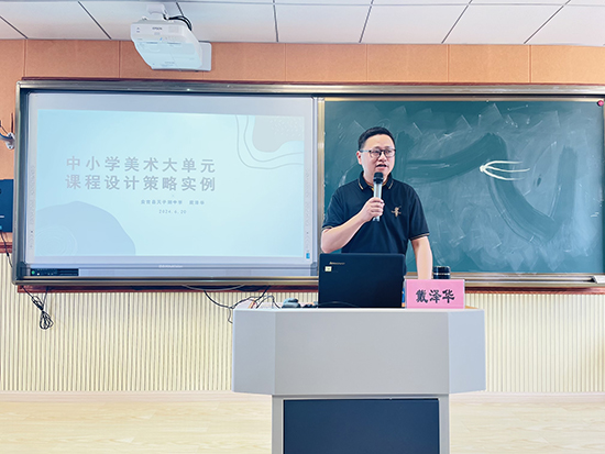 湖州市吳興區教育局教學研究與培訓中心副主任陳勇就中小學美術課要教什么、當下單元教學的梳理、美術大單元的教學實踐、美術大單元教學的思考四方面展開專題講座,分享了大單元教學的實踐案例,強調單元教學不僅是組織形式,更是一種促進學生深度學習的思維方式。
