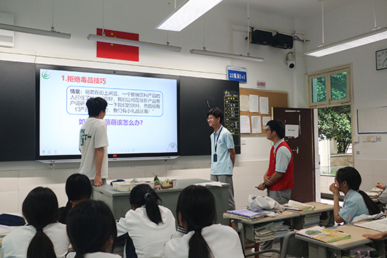 5.同伴教育進(jìn)班級(jí)活動(dòng)。通過(guò)同伴教育的方式,發(fā)揮同伴教育的優(yōu)勢(shì),為所有學(xué)生實(shí)現(xiàn)“珍愛(ài)生命,健康無(wú)毒,幸福人生”身心健康成長(zhǎng)目標(biāo)做出同伴貢獻(xiàn)。