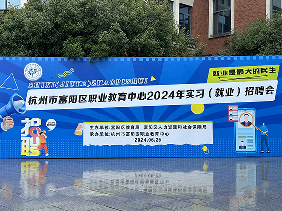 為更好地向社會(huì)、企業(yè)輸送人才,拓寬就業(yè)渠道,為實(shí)習(xí)生、用人單位提供雙向選擇的機(jī)會(huì),6月25日,由富陽區(qū)教育局、富陽區(qū)人力資源和社會(huì)保障局聯(lián)合主辦,富陽區(qū)職業(yè)教育中心承辦的2024年職教中心實(shí)習(xí)(就業(yè))招聘會(huì)在學(xué)校食堂舉行。