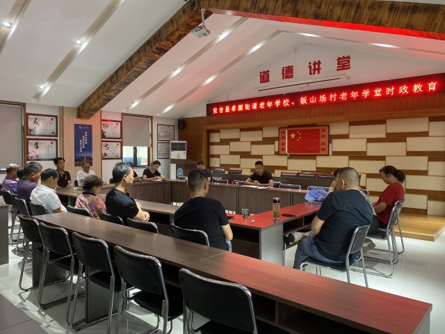 6月26日下午,由安吉縣孝源街道皈山場村黨委、安吉縣社區教育學院孝源學習中心主辦,安吉縣孝源街道皈山場村老年學堂承辦的“新時代·農民夜校”老年時政教育培訓在該村文化禮堂三樓(老年學堂)舉行,16位骨干學員參加培訓。