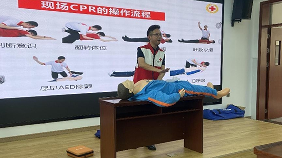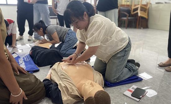 此次培訓(xùn)中,紅十字講師巧妙地結(jié)合案例講解、示范操作和現(xiàn)場演練,全面地為學(xué)員們講解了心肺復(fù)蘇、氣道異物梗阻及AED等急救的知識要點(diǎn),詳細(xì)闡述了心肺復(fù)蘇緊急救護(hù)的基本原則、方法與步驟,耐心展示了心肺復(fù)蘇術(shù)、氣道異物梗阻急救等實(shí)用救護(hù)技術(shù)。學(xué)員們在培訓(xùn)過程中認(rèn)真聽講、動手練習(xí),迅速掌握了急救知識的關(guān)鍵要點(diǎn),了解了應(yīng)急救護(hù)知識和心肺復(fù)蘇具體操作步驟方法,并增強(qiáng)了自身保護(hù)和救助、互救的實(shí)踐能力。