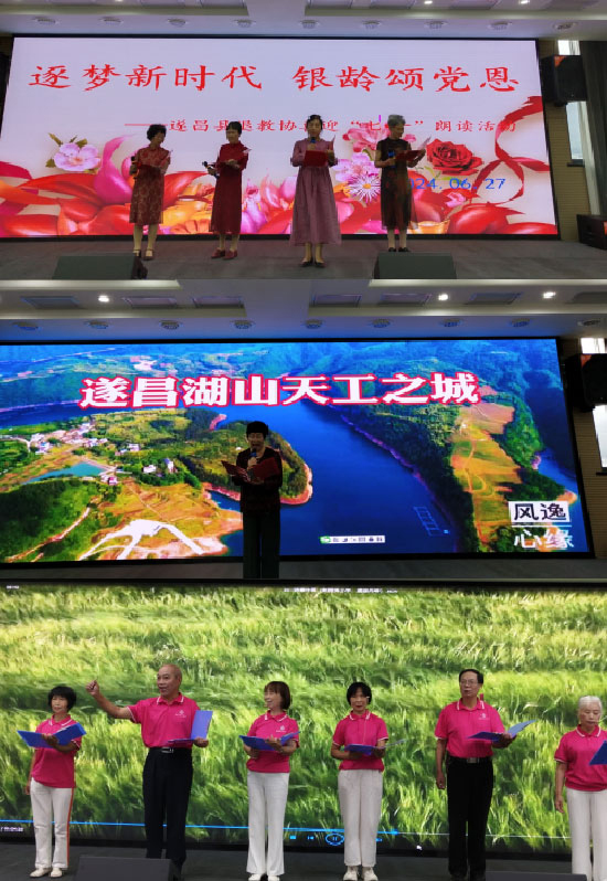 “‘七一’建黨節的前夕,縣退教協就舉辦朗誦活動,有22個節目80余位銀齡教師登臺朗誦,代表了全縣1190余名退離休教職工要表達的心聲:祝愿偉大的中國共產黨朝氣蓬勃、永葆青春!祝福偉大的祖國繁榮昌盛,人民幸福安康!”涂志丹會長表示。(周建娥)