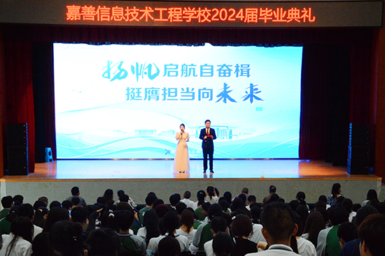在莊嚴(yán)的奏國(guó)歌儀式后,嘉善信息技術(shù)工程學(xué)校2024屆高三畢業(yè)典禮正式拉開(kāi)帷幕。