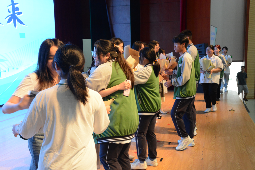 獻(xiàn)花環(huán)節(jié),高三學(xué)子們用最熱烈的掌聲歡迎陪伴了三年的教師們上臺(tái),同學(xué)們手捧鮮花登上了舞臺(tái),把一束束鮮花獻(xiàn)給了自己最親愛(ài)的老師,感謝老師們的辛勤付出,感謝老師們?nèi)陙?lái)的陪伴和支持。芬芳的花朵代表著高三全體學(xué)子對(duì)老師們最衷心的感謝和最誠(chéng)摯的祝愿!現(xiàn)場(chǎng)雷鳴的掌聲,盡情釋放出師生之間最真切的情感。