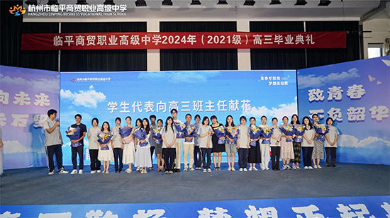 親愛的班主任老師,你們的關愛,你們無悔的付出,你們每一次善意的批評與鼓勵,都深深的落印在學子的腦海中。畢業生代表向班主任老師們獻上鮮花并送上誠摯的祝福,感恩班主任們的辛勤付出和無私奉獻。
