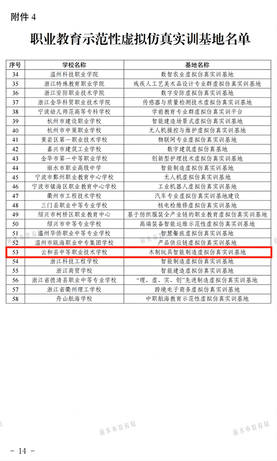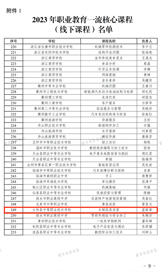 近日,浙江省教育廳辦公室公布了2023年職業教育一流核心課程等教學相關項目名單,云和縣中等職業技術學校申報的2個項目成功入選。其中,藍新章老師負責的課程《木制玩具欣賞》獲評2023年職業教育一流核心課程(線下課程),“木制玩具智能制造虛擬仿真實訓基地”獲評職業教育示范性虛擬仿真實訓基地。