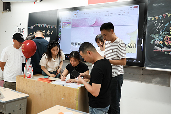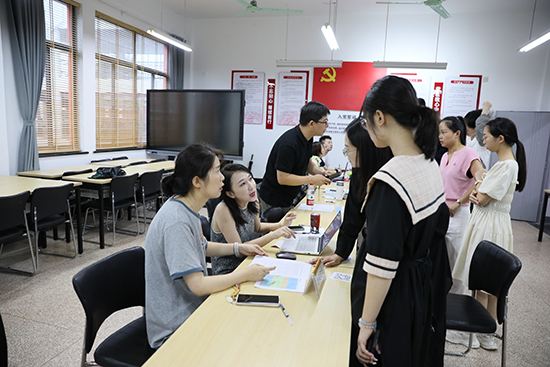 班主任向新生與家長(zhǎng)確認(rèn)信息、發(fā)放資料、提醒注意事項(xiàng)。