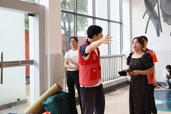 志愿者各司其職,為新生和家長(zhǎng)提供幫助。