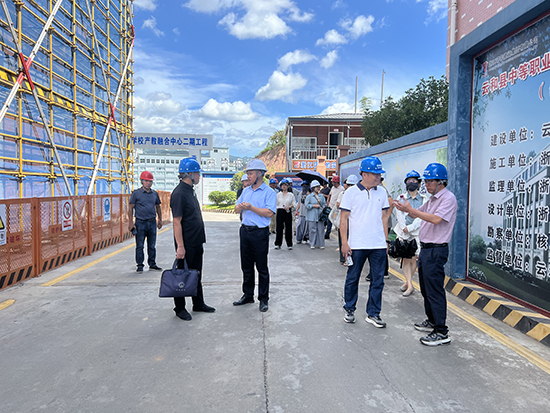 7月16日上午,云和縣紀委監委派駐第三紀檢監察組組長張成通、副組長錢瑾,縣政協教育科技衛生體育委主任梁超煒等一行督查教育系統重點建設項目——云和職技校產教融合中心二期工程和學生公寓工程。縣教育局黨組成員、副局長吳林輝,縣職技校黨總支書記、校長陳偉華,副校長吳根榮陪同。