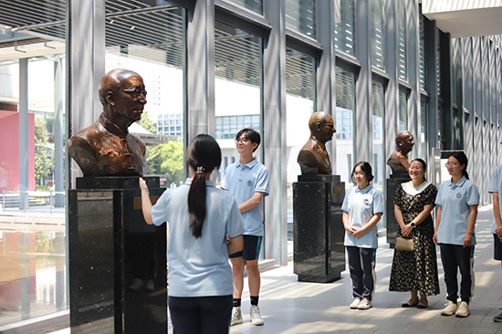 “青芽”暑期實(shí)踐團(tuán)隊(duì)探訪之行第二、三站依次來到了慶安會(huì)館與盧緒章生平事跡館,在小導(dǎo)游團(tuán)隊(duì)的帶領(lǐng)下,同學(xué)們穿越時(shí)空,見證寧波船王們?cè)趽P(yáng)帆遠(yuǎn)航中“甬”立潮頭的壯舉以及“紅色資本家”盧緒章加快寧波開放、促進(jìn)寧波發(fā)展的畢生夙愿。