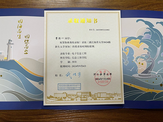 “李老師,我拿到浙江海洋大學(xué)的錄取通知書啦!”嘉善信息技術(shù)工程學(xué)校2024屆畢業(yè)生曹陳一向班主任李麟艷分享喜訊,電話那頭激動的聲音微微顫抖,談及三年來的付出,他表示自己的成功并非偶然。