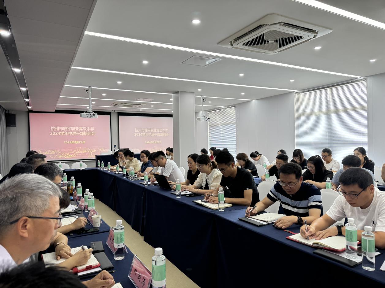 為推動學校高質量發展,加強學校干部隊伍建設,提升干部綜合素養和履職能力,8月23日—24日,杭州市臨平職業高級中學舉行為期兩天的行政干部培訓會。本次會議聚焦“謀好開局篇 走好雙優路”奮斗目標,全體校級領導及中層干部齊聚一堂,通過聆聽專家講座、領導講話、集中匯報等形式交流研討,共繪學校高質量發展新藍圖。