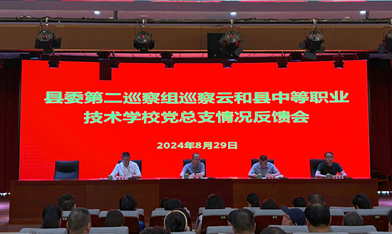 8月29日上午,云和縣委第二巡察組巡察云和縣中等職業技術學校黨總支情況反饋會在學校旅游、電商產教融合大樓五樓報告廳召開。