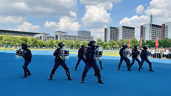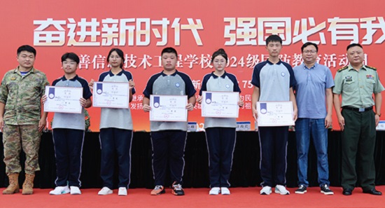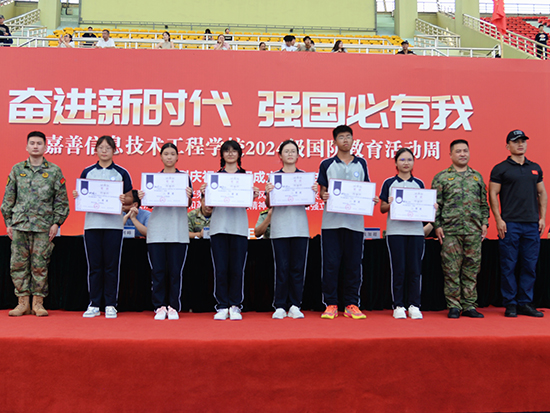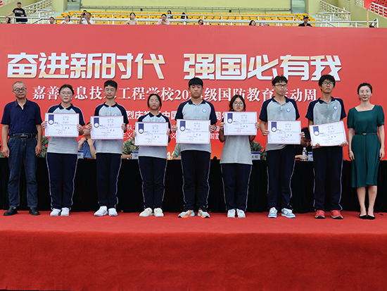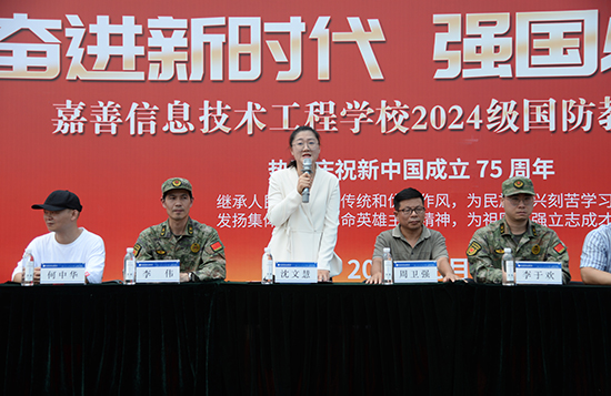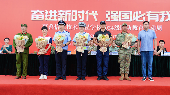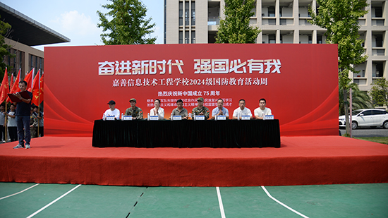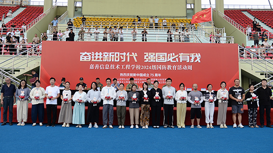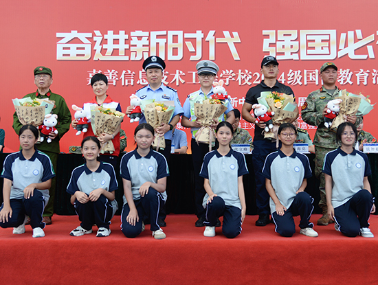 嘉善縣人武部部長張立峰,嘉善縣人武部副部長徐海亮,嘉善縣教育局黨組成員、副局長楊劍峰,姚莊鎮人武部部長錢加超,西塘鎮人武部部長吳兵強,嘉善縣教育局職成教科科長周崇旸,嘉善縣巡特警大隊黑鷹突擊隊副隊長、特勤中隊長阮志豪,學校黨總支書記徐晉謙,學校黨總支副書記、校長邱雨馨,學校黨總支副書記周建平出席活動。