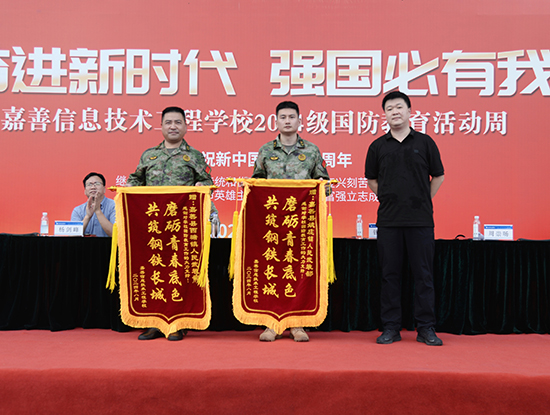 活動現場,學校領導和與會嘉賓為被表彰的優秀教官以及在會操比賽中表現突出的班級頒發榮譽證書,為辛勤付出的班主任們送上吉祥物,為姚莊鎮人武部和西塘鎮人武部授予錦旗。楊劍峰向此次受邀前來授課的抗美援朝老兵、紅十字會救護師、法治副校長、交警及特警送上花束,學生代表們為他們送上吉祥物。