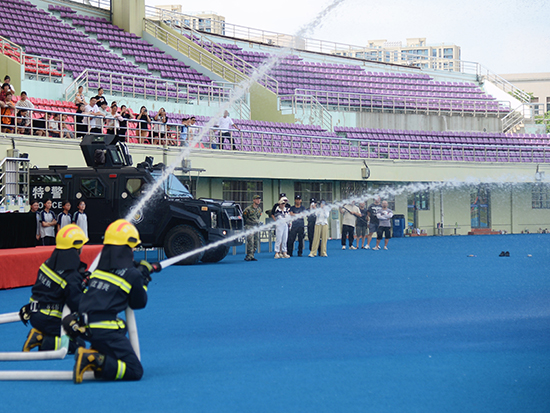 活動現場,少年們還迎來了反恐與消防教育體驗。通過模擬真實的反恐場景,少年們學習了如何識別可疑人員、應對突發襲擊以及自我保護的基本技巧。在消防官兵的指導下,少年們學習了消防器材的使用方法,還親身體驗了滅火器的操作。
