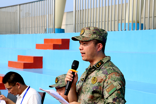 王堅龍副部長代表人武部宣讀軍訓教官名單,他對同學們提出三點要求:第一,要求同學們把自己當作一名軍人。第二,要求同學們在軍訓中學會關愛他人,關心集體。第三,希望同學們在訓練后要認真總結。他也代表全體教官在全校師生面前做出承諾會在全體訓練中嚴密組織,精心指導,盡職盡責,以飽滿的精神狀態投入到訓練中,出色完成軍訓任務。