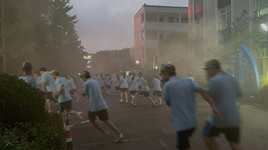 隨著緊急疏散警報的響起,新生們在班主任和教官的指導(dǎo)下,迅速按照預(yù)定疏散路線,用濕毛巾捂住口鼻,彎腰低頭,緊張而有序地從宿舍樓撤離至安全地帶。整個疏散過程用時2分20秒,所有新生均安全到達(dá)操場,無一人受傷。