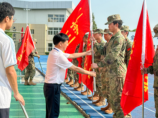 吳曉斌、唐雨濤向各連隊授旗,教官們接過的不僅是一面面火紅的旗幟,更是一份份沉甸甸的責(zé)任。
