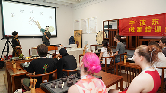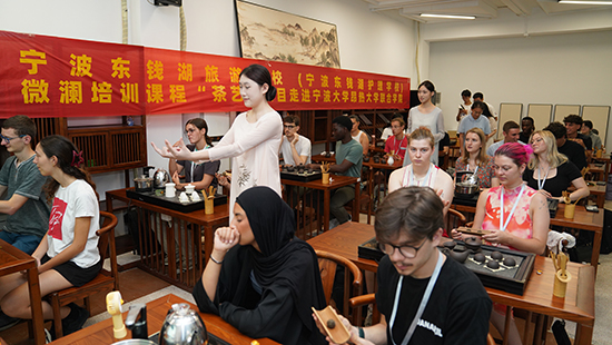 法國昂熱大學是一所具有700年歷史的老牌國立綜合性大學,參加本次培訓的學員正在寧波大學參加夏校交流,“中國茶藝”是他們學習的重要內(nèi)容。