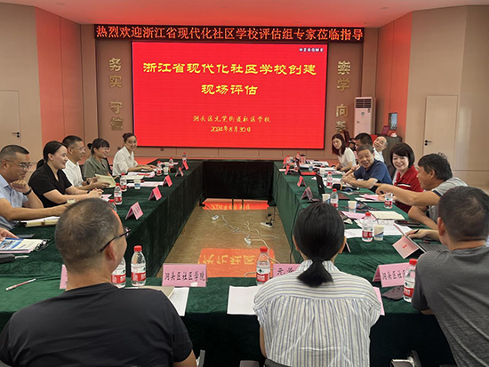 評估組組長方志剛帶隊對元覺街道社區學校的周邊環境改造及校園文化建設進行了仔細考察,先后查看了鄉愁館、多媒體教室、社教辦公室、電商實訓室、家政實訓室、形體訓練室、閱覽室、書畫室、黨員活動室、共富直播間、公共服務大廳等教學場館,并通過航拍圖查看了蘭小草文化長廊、百姓舞臺、圖書館、足球場、籃球場、門球場等活動場地。評估組對學校的先進文化布置、齊全教學設施,以及教育部門和當地政府為社區學校所做出資源開放共享工作的努力表示高度贊賞。