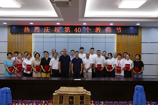 會后,周鴻飛為獲獎教師頒獎并合影留念。(李政)