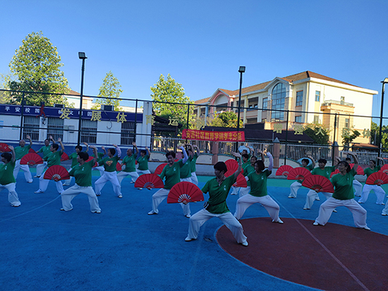 9月18日清晨,安吉社區教育學院孝豐分院在孝豐社區廣場舉辦太極功夫扇培訓進社區活動,吸引50名老年朋友參加。