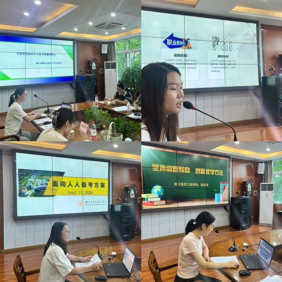 德清職業(yè)中專董潔潔、湖州交通學校褚園園、湖州藝術設計學校鄭思齊和浙江信息工程學校陸苾聞依次分享了本校省“面向人人”競賽的備考經(jīng)驗。講解可視化、輔導個性化、作業(yè)目標化等措施充分體現(xiàn)了各校根據(jù)自身學情特點制定備考策略的實操性。通過經(jīng)驗的分享、思維的碰撞,老師們在學困生轉化方面深受啟發(fā),精進了備考經(jīng)驗。
