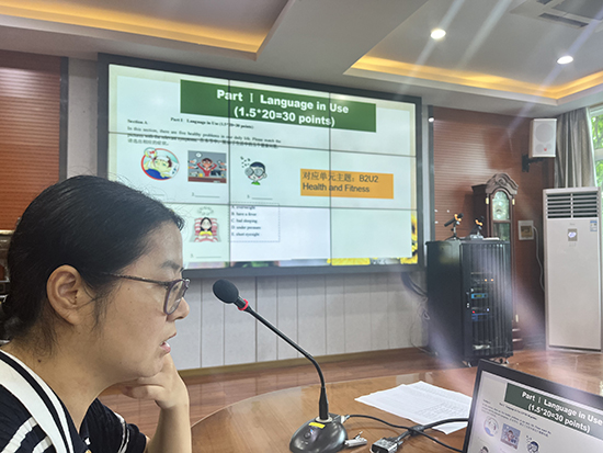 市中職英語兼職教研員張霞做了2024年省“面向人人”英語試卷的分析,幫助教師們分析試卷的新題型、新變化以及出題的趨勢,根據(jù)考綱解讀每個題型的具體要求,以及如何結合日常英語教學有針對性地做好備考工作。
