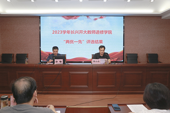 學院黨總支書記章小杰公布了2023學年“兩優一先”評選結果并進行頒獎,優秀黨員、優秀黨務工作者和優秀黨支部代表:尹章偉、吳永華、趙宇飛三位同志作交流分享。尹章偉以用“四定”擁抱平凡的快樂為主題,從“堅定一種信念,吃定兩樣東西,確定三個定位,綁定四項能力”四個方面暢談了作為一名黨員如何踐行教育家精神、提升教育教學質量的體會和感悟,吳永華從定準位、站好位,努力把支委黨務工作做到位,趙宇飛則以“星火”聚力,榜樣引領為主題,展現了新時代黨建的扎實做法。“兩優一先”的評比,展現出長興開大教師進修學院新時代教師的風采,為學院高質量發展奠定了堅實的基礎,同時為新時代教育事業的發展貢獻了自己的力量,激勵著全體教師不斷前行。