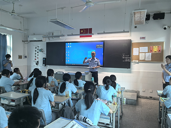 本次講座由德清縣公安局反詐中心李小瓏警官主講,湖州市公安局刑偵支隊支隊長沈光明,湖州市公安局刑偵支隊副支隊長潘振洋出席。