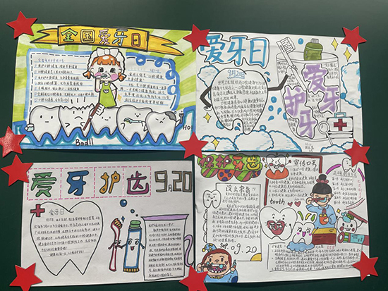 校衛(wèi)生室開展健康宣講講座,強化學生口腔清潔的正確方法和日常護牙小常識,提升護牙意識。各班還積極開展“愛牙護牙”手抄報活動,讓同學們更加全面地了解齲齒的危害,掌握正確的巴氏刷牙法。同時開啟“科學刷牙 牙齒棒棒”反哺活動,鼓勵學生將在校學到的健康知識傳授給家人,培養(yǎng)健康宣教能力。