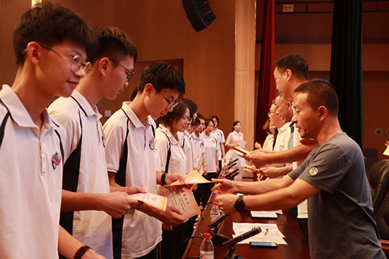 會上,顏申君宣讀了2023學(xué)年第一學(xué)期獎學(xué)金獲獎名單。主席臺領(lǐng)導(dǎo)為實驗班一等獎學(xué)金獲得者現(xiàn)場頒發(fā)獎狀。