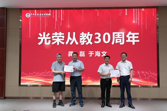 歲月靜好,秋收滿園。大會上,還為徐水華、徐文婕兩位教師舉行了榮休歡送儀式,為龔磊、于海文兩位30年教齡的教師頒發(fā)證書。四位老教師圍繞校園老榆樹,共吟詩篇,以深情厚誼,細(xì)述建校滄桑。詩行間,激勵全體教師矢志不渝秉持初心,將教書育人的神圣使命鐫刻于心、踐之于行,繼續(xù)為教育事業(yè)貢獻自己的智慧與力量。