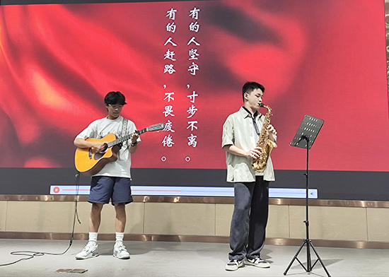 同樣來到活動現(xiàn)場的還有24屆畢業(yè)生周志豪同學(xué),他與新入職的時銘遠(yuǎn)老師并肩,以一曲深情激昂的樂器合奏,引領(lǐng)眾人心靈啟航。師生默契的配合詮釋了教育的真諦:不僅僅是知識的傳授,更是情感的交流、心靈的觸碰和靈魂的喚醒。
