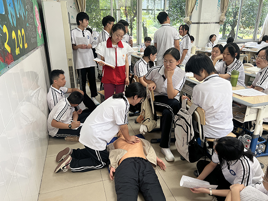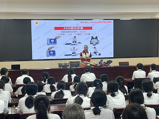 本次培訓(xùn)分為理論和實(shí)操兩個(gè)部分。學(xué)校特邀了江山市紅十字會(huì)應(yīng)急救護(hù)師擔(dān)任講師,通過生動(dòng)有趣的PPT展示、互動(dòng)問答、模擬演練等多種形式,深入淺出地講解了心肺復(fù)蘇術(shù)(CPR)、自動(dòng)體外除顫器(AED)的使用技巧、止血包扎、傷員搬運(yùn)等緊急救護(hù)知識(shí)與技能。同學(xué)們圍坐一圈,聚精會(huì)神地聆聽著每一個(gè)細(xì)節(jié),從識(shí)別心臟驟停的“黃金四分鐘”,到正確實(shí)施心肺復(fù)蘇的步驟,再到AED的規(guī)范操作流程,每一個(gè)環(huán)節(jié)都力求精準(zhǔn)無誤。