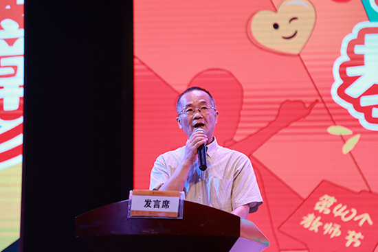 表彰完畢后,有著41年教齡的皮立民老師作為教師代表上臺發(fā)言,他以感悟到的“踏踏實實做事,老老實實做人”的人生真諦,激勵教師要有奉獻(xiàn)、誠信等立身之本,要有高度的責(zé)任感和使命感。