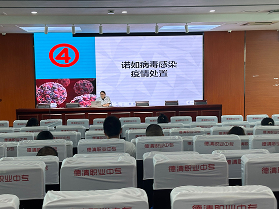 為筑牢校園健康安全防線,提升全體教職工對(duì)傳染病防控的認(rèn)知水平及消毒作業(yè)的專業(yè)能力,德清職業(yè)中專于9月23日舉行傳染病防控與消毒知識(shí)專題講座。此次培訓(xùn)面向全校各班級(jí)班主任、食堂工作人員、宿舍管理人員、安保團(tuán)隊(duì)、物業(yè)及保潔等人員,旨在構(gòu)建全方位、多層次的校園防護(hù)網(wǎng)。